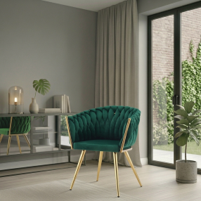 block Obecnie brak na stanie Krzesło tapicerowane Rosa-B butelkowa zieleń złote nogi 539,00 zł (brutto) Produkt z filmem