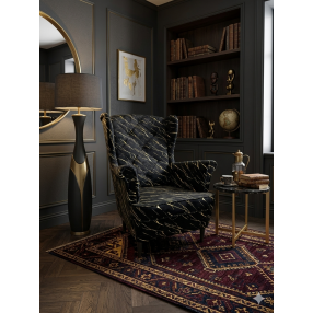 Fotel uszak wzorzysty marmur czarny