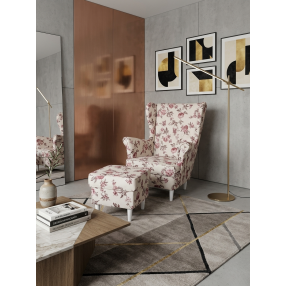 Fotel uszak wzorzysty z podnóżkiem róże
